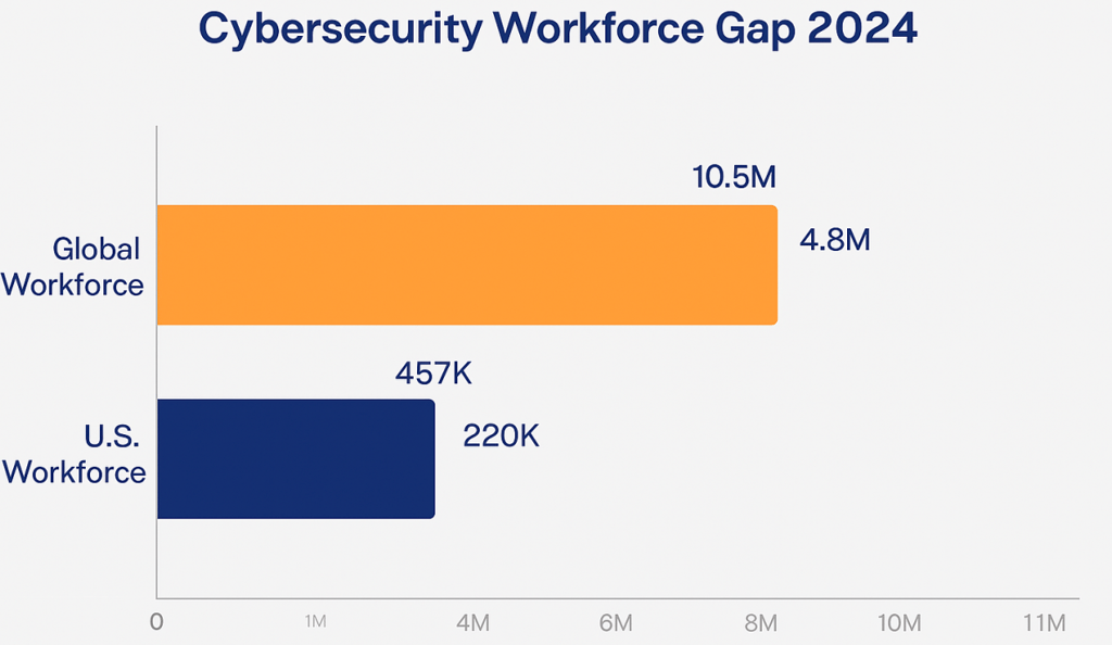 Global Cybersecurity Workforce Gap: As of 2024, the global cybersecurity workforce stood at 5.5 million, but the estimated demand was 10.2 million, resulting in a gap of 4.8 million professionals, a 19% year-over-year increase. U.S. Cybersecurity Job Openings: In 2025, there were 457,398 cybersecurity-related job postings across the United States, with a supply-to-demand ratio that remains critically low. Healthcare Sector Specifics: While exact numbers for healthcare cybersecurity are harder to isolate, industry leaders at the 2025 HIMSS conference emphasized that 55% of health systems plan to increase cybersecurity staffing, yet many still lack the talent pipelines to meet those goals. Federal Agency Blind Spots: A recent GAO report revealed that 22 out of 23 federal agencies could not accurately account for their cybersecurity contractor workforce, making strategic planning nearly impossible. According to the 2024 (ISC)² Cybersecurity Workforce Study, the global shortfall in cyber professionals has reached 4.8 million. In the U.S. alone, CyberSeek reports over 450,000 open cybersecurity roles, with healthcare systems struggling to fill specialized positions. A 2023 GAO report revealed that 22 out of 23 federal agencies lack accurate data on their cyber contractor workforce, making strategic planning nearly impossible.