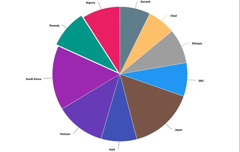 Case Studies: Vietnam, South Korea, Ethiopia, Nigeria, Japan, Chad, DRC, Burundi, Haiti, and Rwanda